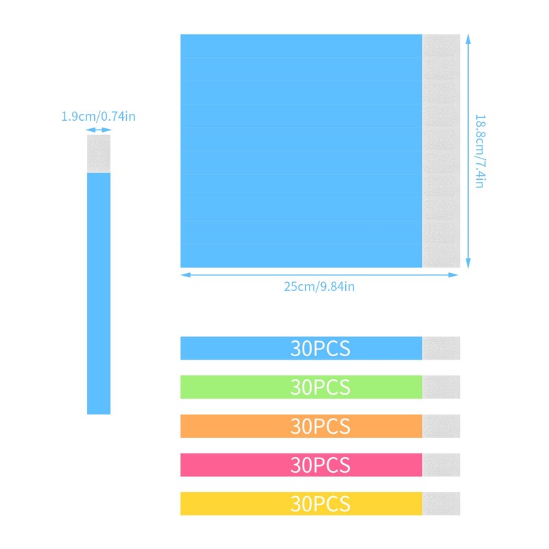 - 【Easy to use】: There is a retaining strap at one end of the entry band, so you need to remove the tape protector and attach the strap to the other end of the Tyvek bracelet. You can put the event band in a comfortable position as needed.