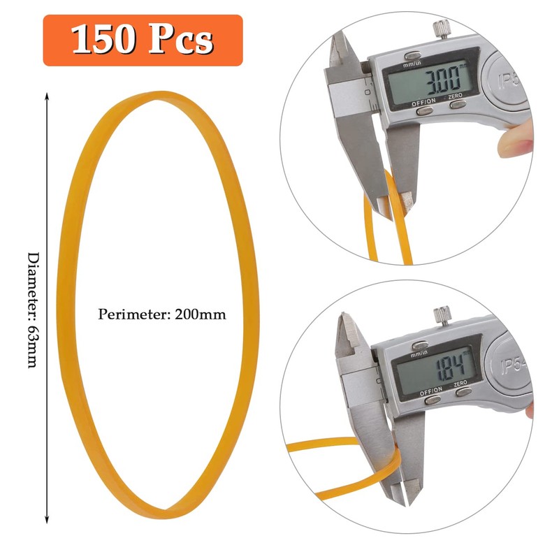 Pack of 150 Yellow Rubber Rings, Large Rubber Bands, 3 mm Wide, Strong Reusab...