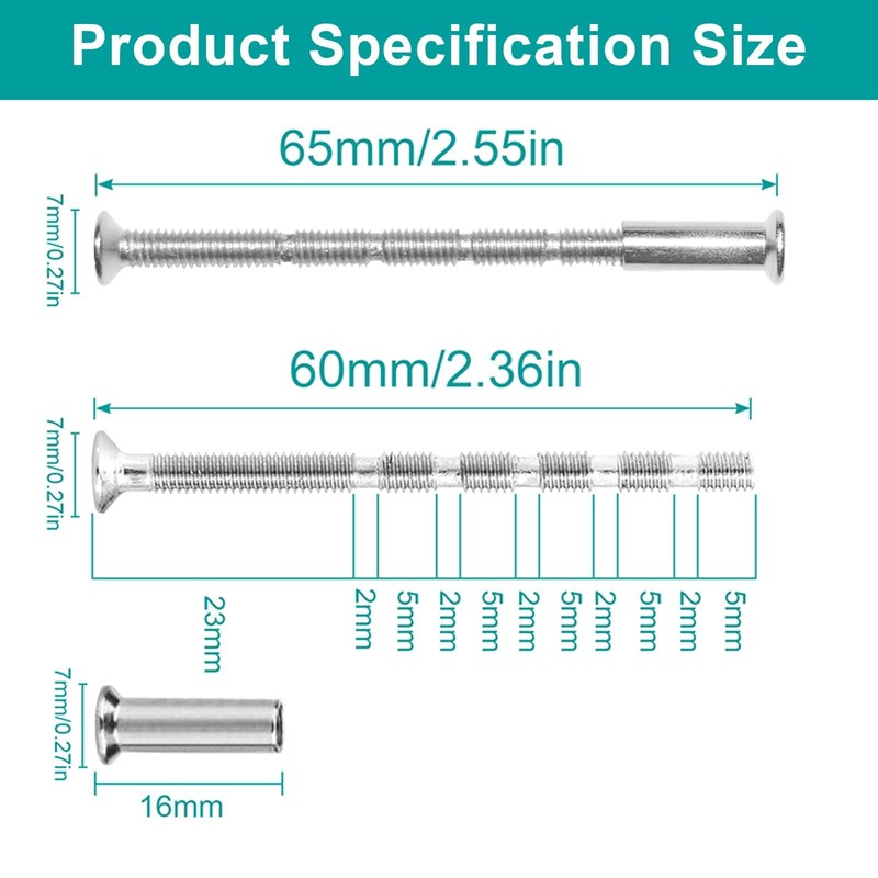 - The length can be cut: the thread on the screw is segmented, total length 60 mm, there are 6 threads, 5 short threads (5 and 6 mm) and a long thread (23 mm). You can adjust the length of the screw with pliers or other tools. So that it can better replace your old screws.