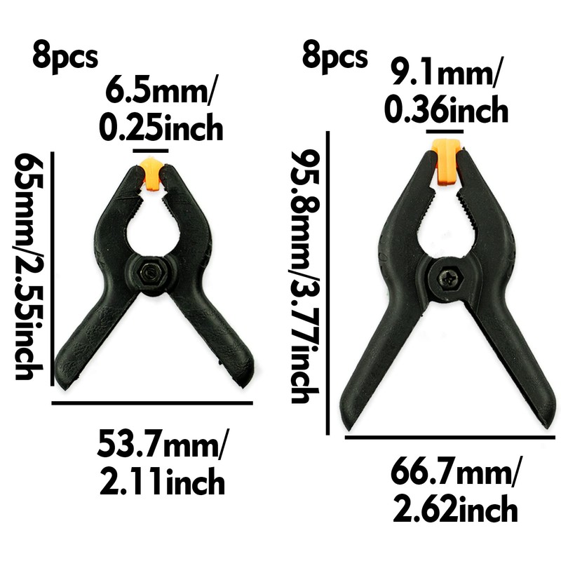- Product information: a set of spring clamps contains 2 sizes, 8 pieces 2 inch clamp clips and 8 pieces 3 inches. You can choose a suitable spring clamp according to the items to be clamped.