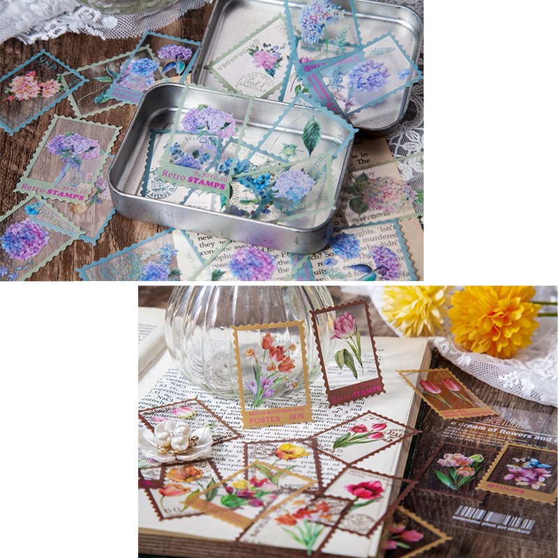 Pack of 160 PET Transparent Stamps Decorative Stickers, Flowers Scrapbook Sticker Set, 4 Flower Motifs, Plant Stickers for Arts, Crafts, Bulletmarks, Laptops, Scrapbook Calendar (Style 02)