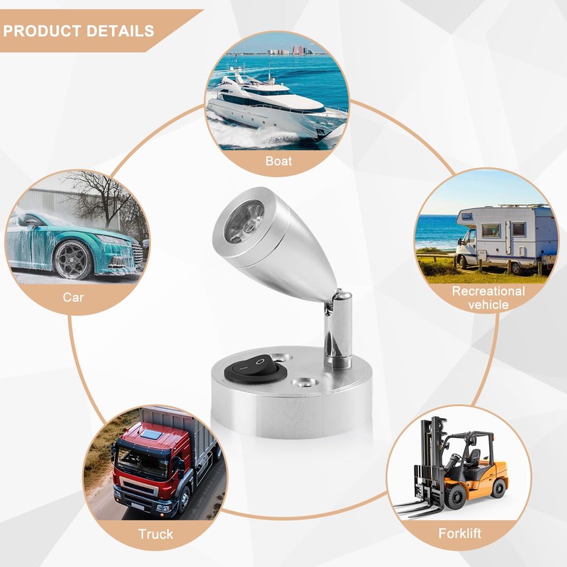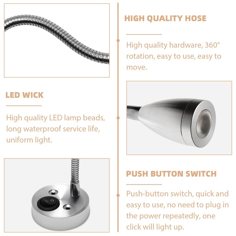 - Rotating lamp head: 12 V LED spot reading light uses a high-quality hose, the lamp head can be rotated 360° horizontally and 180° vertically. Meet the lighting requirements from different angles