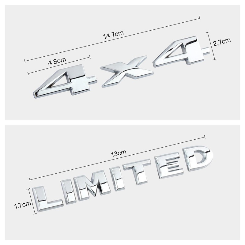 Pack of 2 3D Car 4x4 Limited Chrome Logo 4WD Emblem, Silver Rear Sticker Name Plate Badge, Metal 4x4 Limited Car Emblem, 3D Silver Metal Car Sticker, for Car, Moto, Motorcycle, Bicycle
