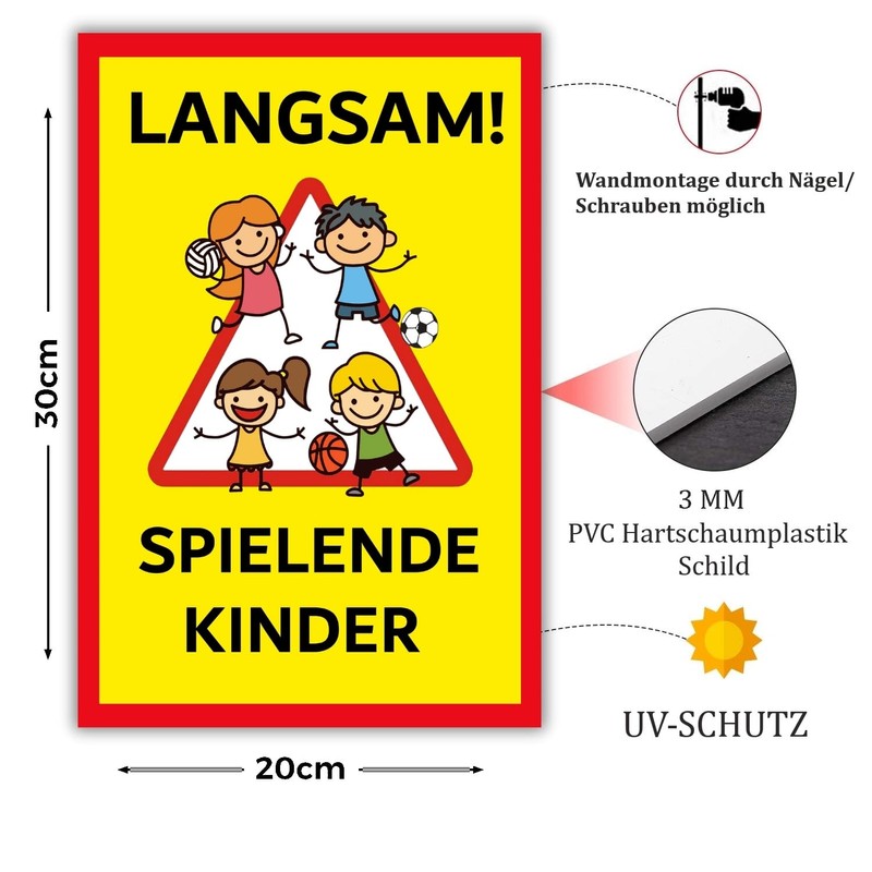 - 100% effective – the bright colours and the strong contrast on the warning sign are still easy to see even at dusk and clearly demand: Attention children!