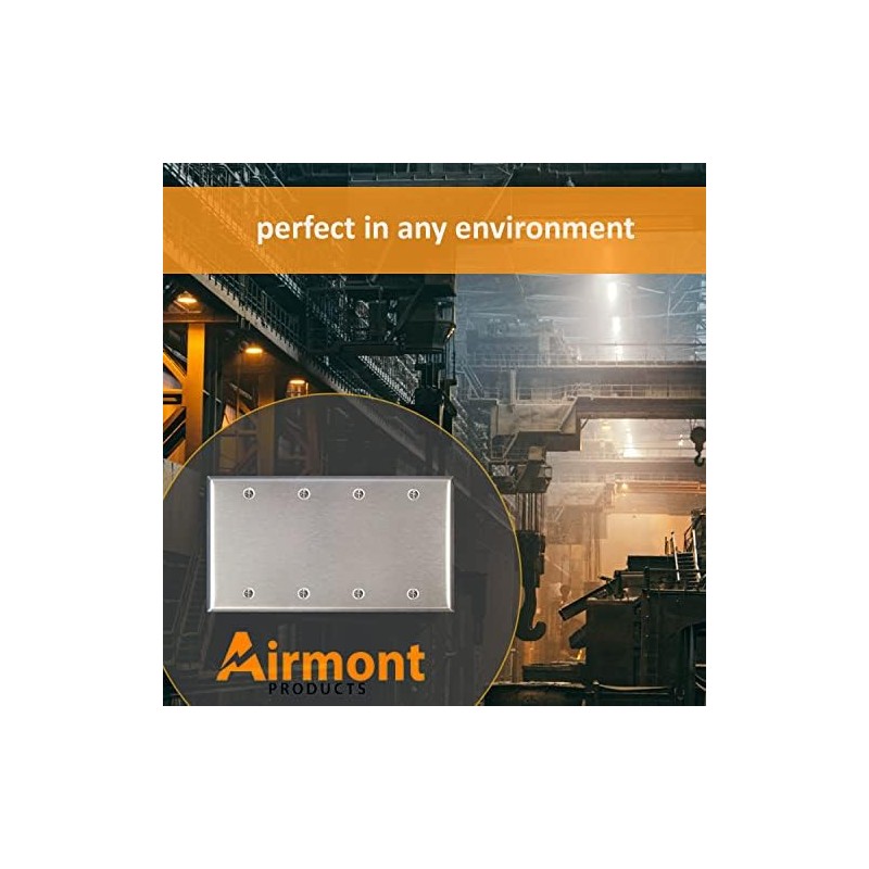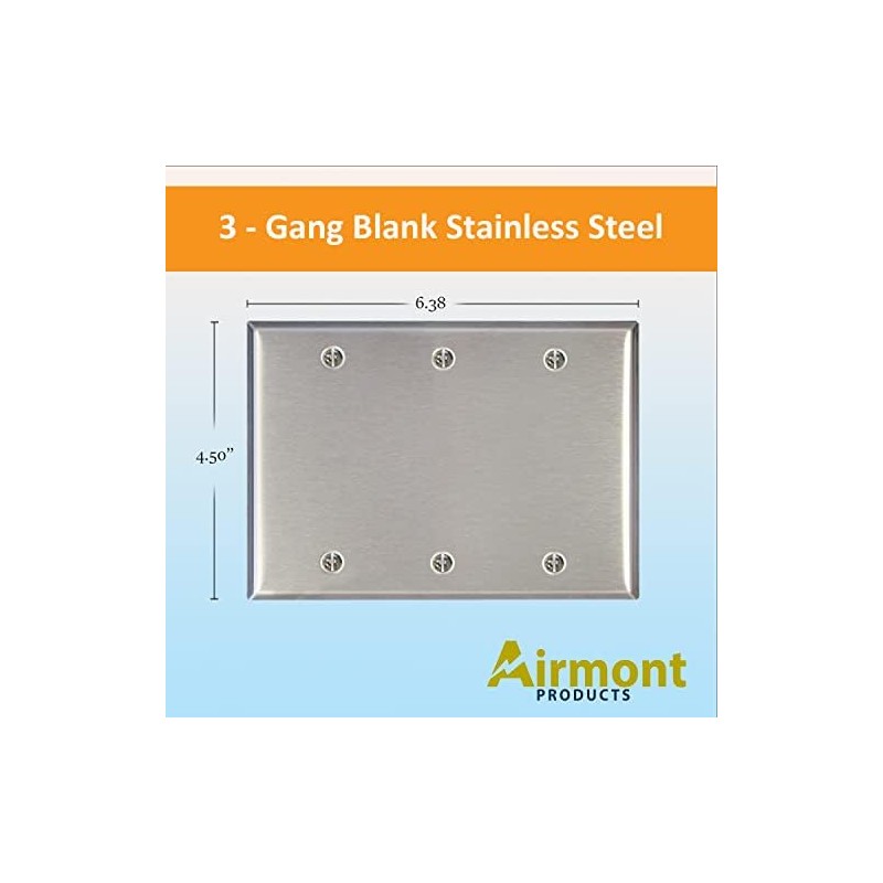 (Pack of 2) Airmont Products AP-10413, Stainless Steel Blank Wall Plates, 3 Gang Standard Size 4.50" x 6.38" Corrosion and Heat Resistant, Silver Metal, Cover Unused Electrical Sockets or Switch Holes