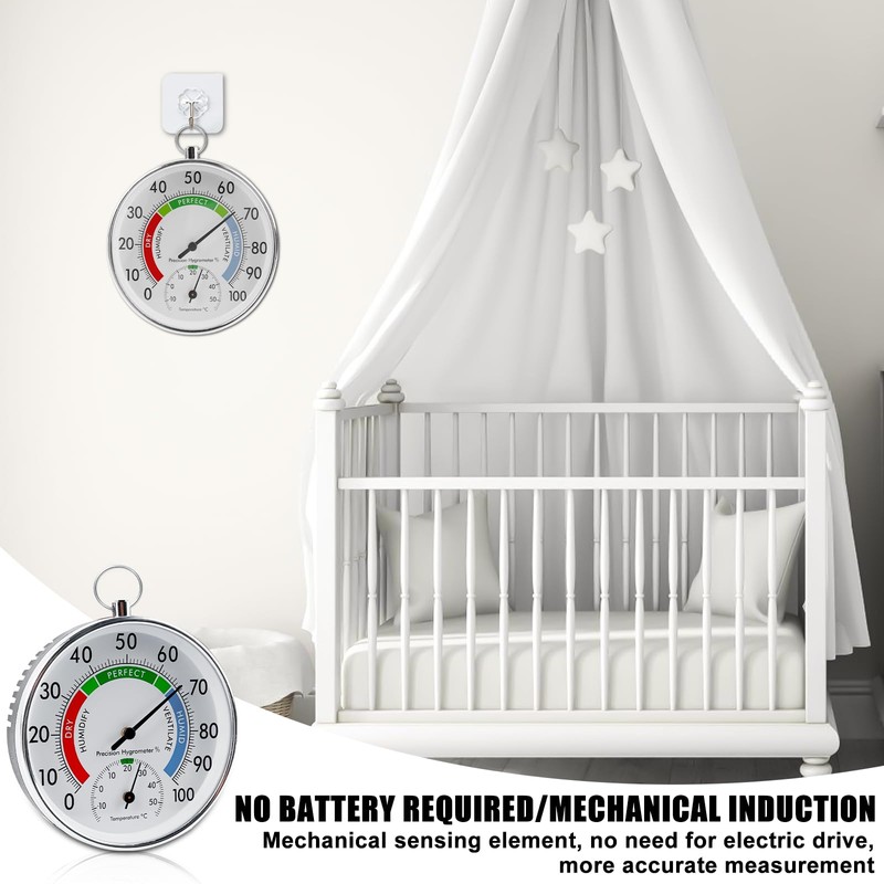 - Wide range of applications: thermometer hygrometer analogue with hanging loop is suitable for almost any measurement scenario such as walls, tables, refrigerators, doors, incubators, greenhouses, cars, baby rooms, etc. Thermo-hygrometer is a very ideal choice.