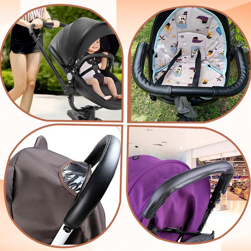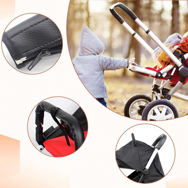 - Universal pram handle cover: waterproof and sweat-proof faux leather, hygienic and comfortable.