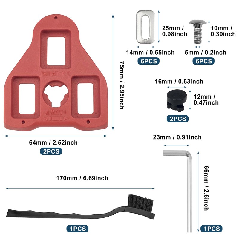 - 2.【Package includes】: Package includes two pieces 2 sets bicycle shoe plate set, a hex key and a cleaning brush.