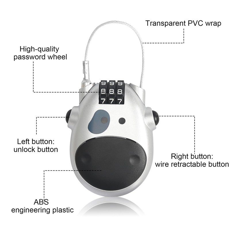 - Bicycle cable lock: Our bicycle lock cable lock is designed in a beautiful cartoon cow shape with special matte texture for cute and elegant appearance. It lock scooter not only ensures the safety of your luggage, but also gives your suitcase some beauty.