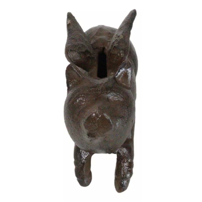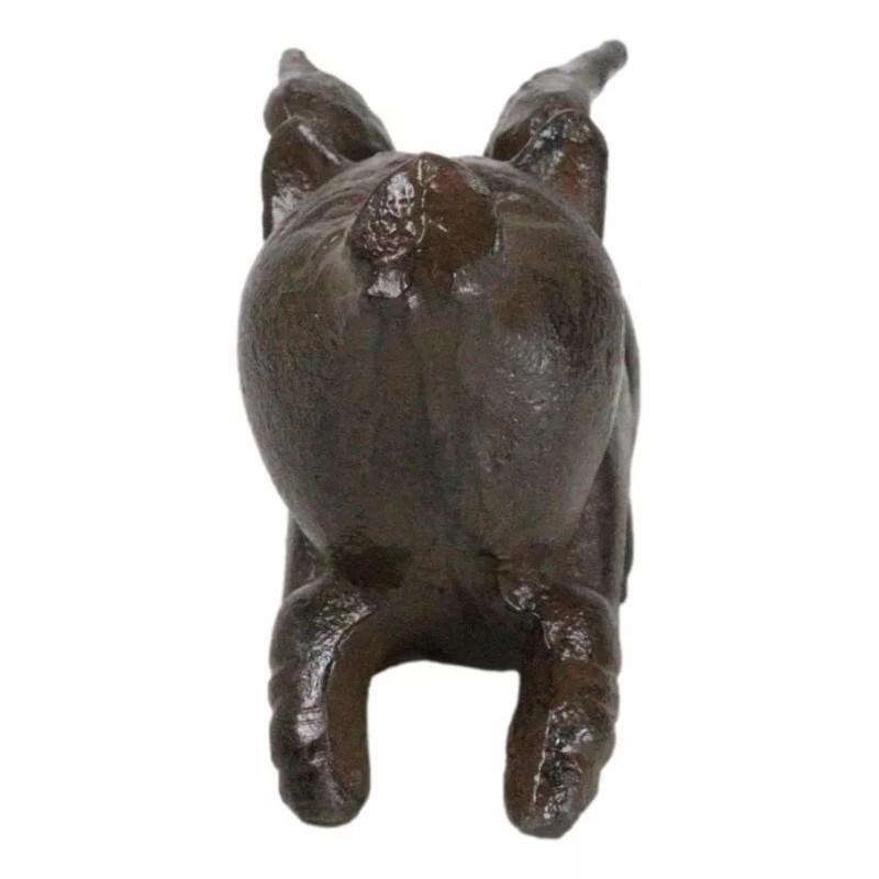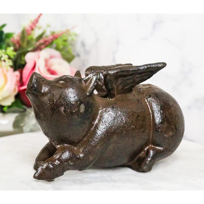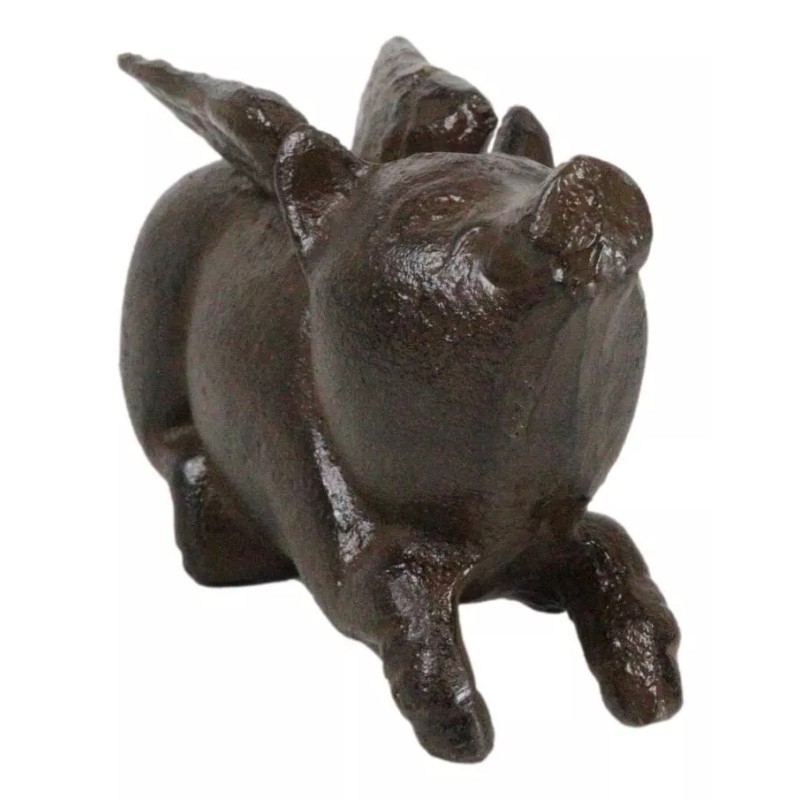 • Each Flying Pig Sculpture is made of solid heirloom cast iron, hand painted and polished in rusted bronze finish.