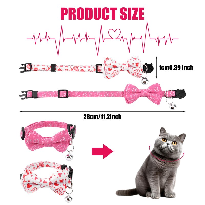 - Package Details You will get 2 styles of Valentine's Day collars for kittens with cute and delicate designs, which are very suitable as holiday decorations for your kitten to enhance the festive atmosphere. The size of the collar is 28 x 1 cm, which is suitable for the neck size of most animals.