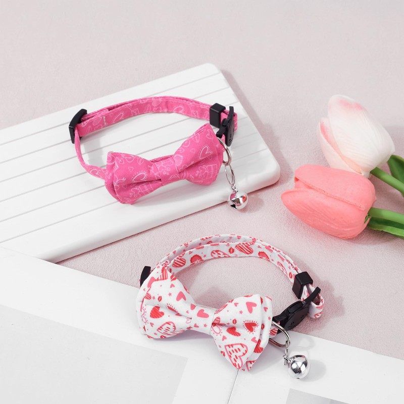 Pack of 2 Cat Collars for Valentine's Day, Kitten Collars, Cat Collar with Bow Tie, Valentine's Day Collar for Kittens, Cute Cat Collar for Pets