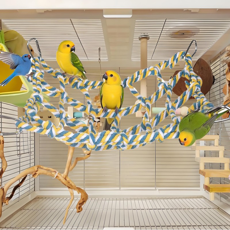 - Are you annoyed that your small pets get bored in the cage and do not move enough? Our colourful bird rope net provides a great way for your animals to move and climb extensively, which promotes their health and dispels boredom.