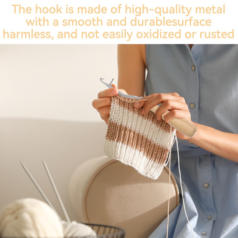 You will receive two curved wooden latch hooks, the material combination of which is very useful. The handle is made of natural wood, which is durable and sturdy. The ergonomic design ensures a comfortable grip and does not break easily. The hook is made of stainless steel, with a smooth surface that is resistant to oxidation and rust, giving it a long service life.