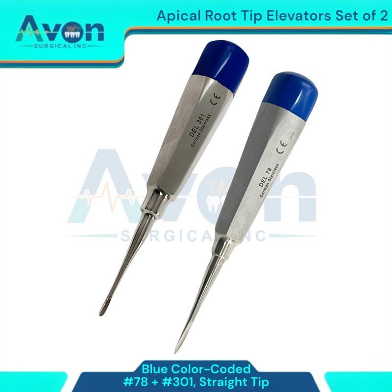 - Includes: Set of 2 - #78 & #301 root tip pick dental tooth extraction elevator, straight tip, color-coded hollow handle - German stainless steel.
