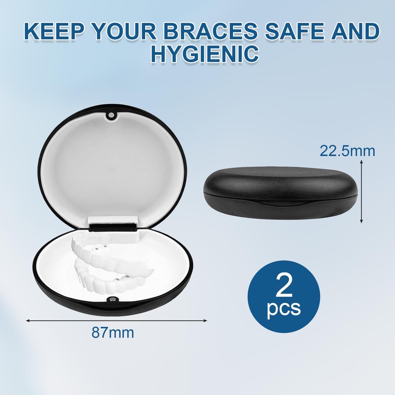 - Lightweight and easy to carry: braces box has a diameter of 8.8 cm and a thickness of only 2.3 cm. It is compact and lightweight, so you can easily take it with you. Whether you are travelling or going out daily, denture container can be conveniently stored in your bag.