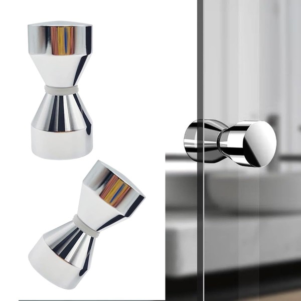 Pack of 2 Door Knobs, Shower Door Knobs, Double Knobs, Glass Door Handle, Stainless Steel Door Handle for Shower Door, Glass Doors (Silver-1)