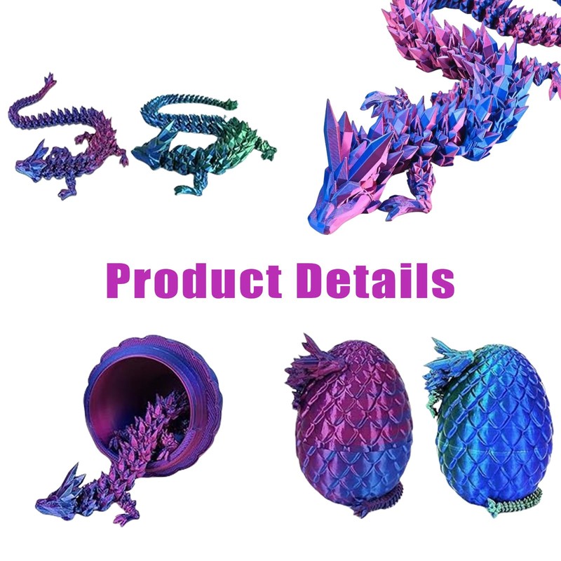 - Fully movable joint: all parts of this 3D dragon egg figures can move and rotate freely and flexibly, including the joints of the head, neck, torso and tail. The body of the printed dragon is medium length, which gives it an impressive look without losing flexibility. It can be brought into different poses to make it more interesting