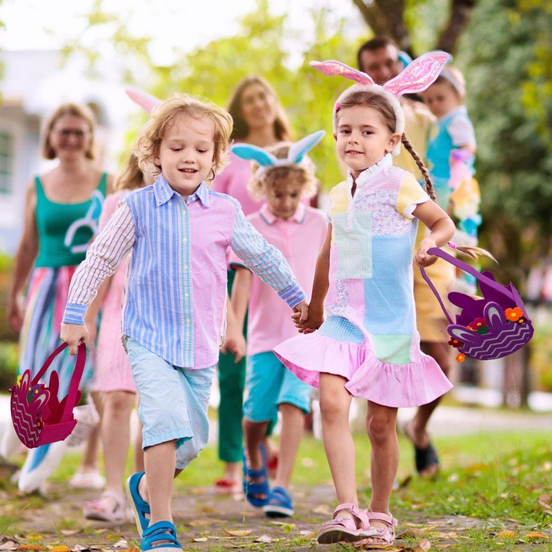 - Easter baskets: offer Easter felt bags in dark purple and pink. These colourful Easter bags are perfect for looking for Easter eggs in the garden, and can also be used as festive decorations for your home. The felt Easter baskets are ideal for filling with gifts and are also suitable for children's birthdays, school events, spring festival or as Easter decoration