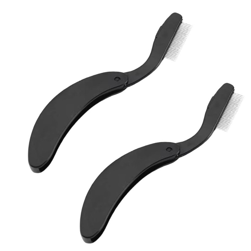 Pack of 2 Foldable Eyelash Brushes, Black Eyelash Brushes, Portable Eyelash Comb, Steel Needles, Eyebrow Comb