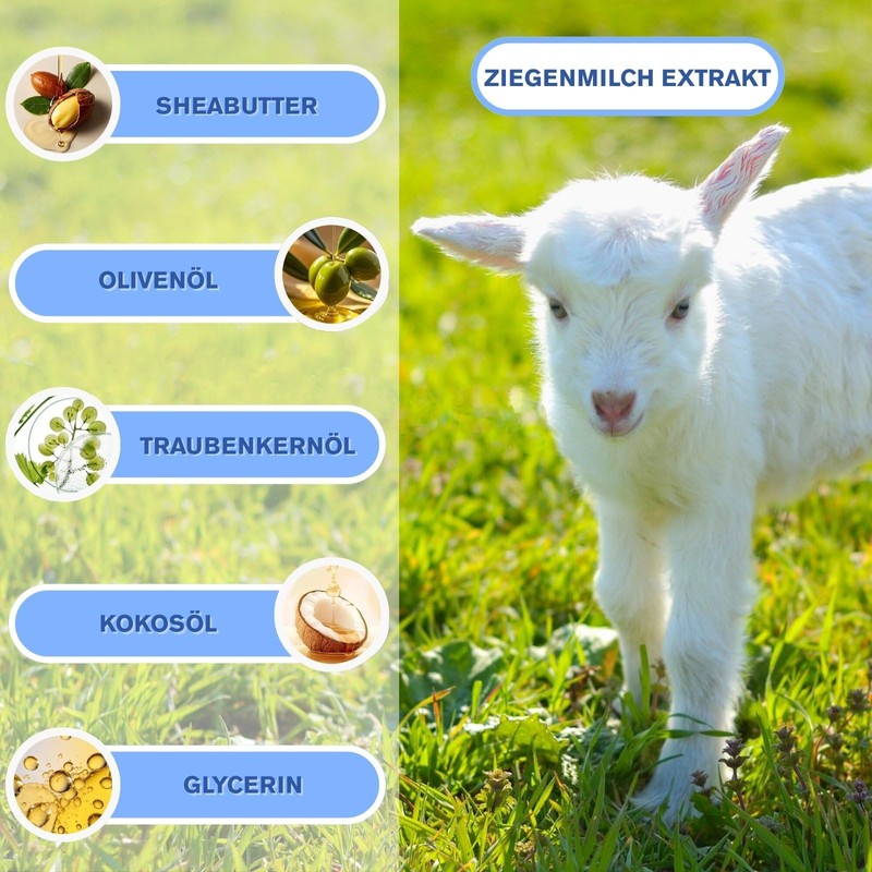 - Deep care with goat milk, increases the natural moisture binding of the skin: This soap contains goat milk extract with skin-like pH value for quick penetration - forms a moisture store against dryness. Goat milk is rich in vitamin E, which helps to maintain the elasticity and natural radiance of the skin and thus delay skin ageing