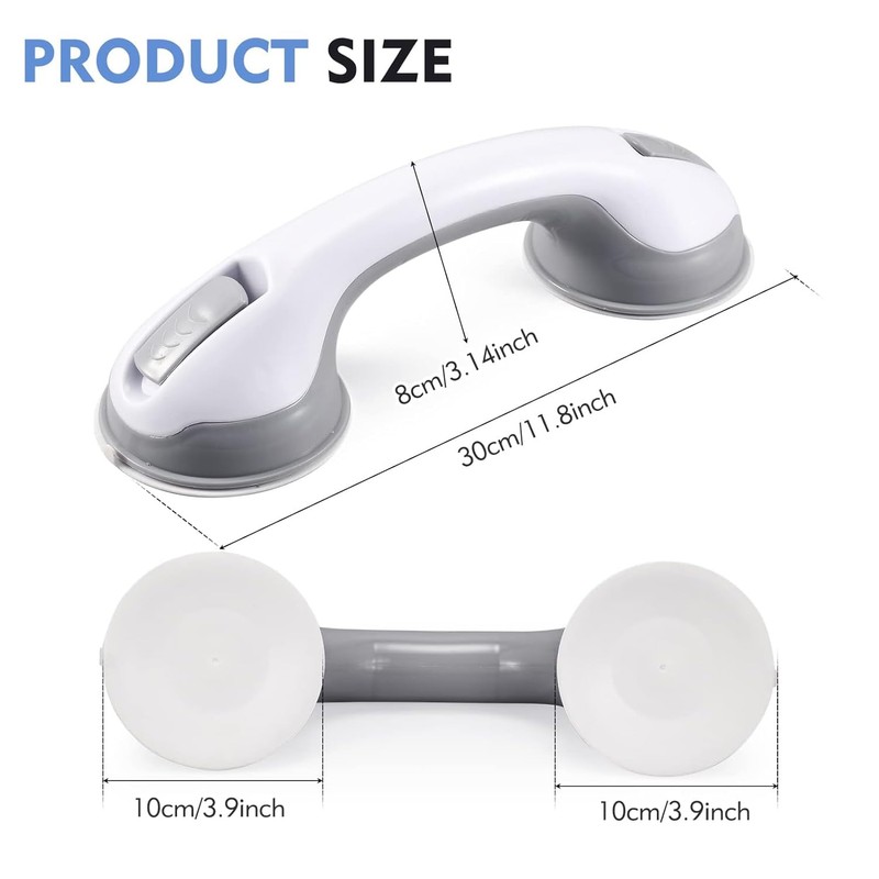 -- Ensure the safety and comfort of your loved ones with 2 suction cup grab bars designed for strong, stable and durable hold in the bathroom.
