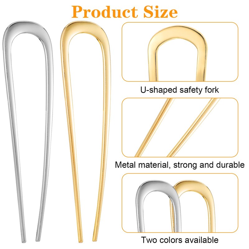 Pack of 2 Hair Pins Large Metal U-Shaped Hairpin Hair Pin 2 Prong Updo Chigno...