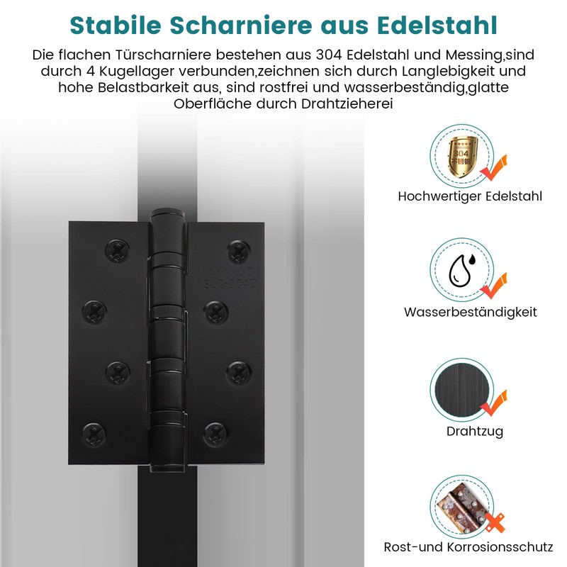 - Slim ball bearing & reduced friction: the black hinge is designed with 4 ball bearings between the 2 hinges, which can be opened and closed freely doors without noise. And the smooth and smooth surface reduces friction between the heavy door and the hinges, which makes the doors or windows easier, smoother and quieter when opening or closing. With a folding hinge you have a simple and comfortable environment