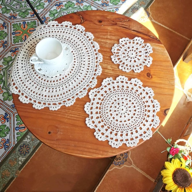 • Product material: Crocheted by hand from cotton fabric, they are safe and non-toxic, easy to wash and reusable. They are an elegant addition to tableware, cups, plates and table decorations.
