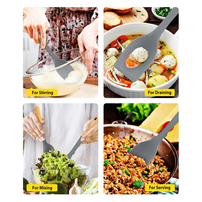 - Just Want to Provide the Ideas for You: Solid cooking spoons can hold more food;Slotted Spoon can quickly drain the water;Whether it is used for draining,serving food, mixing, baking or stirring, our large silicone cooking spoons will add more fun to your kitchen