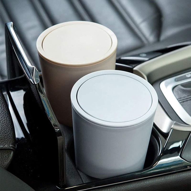 Pack of 2 Mini Car Trash Bins with Lid Drink Holder in Car, Plastic Mini Car Trash Bin, Portable Car Trash Bin, Suitable for Car Interior, Office, Home