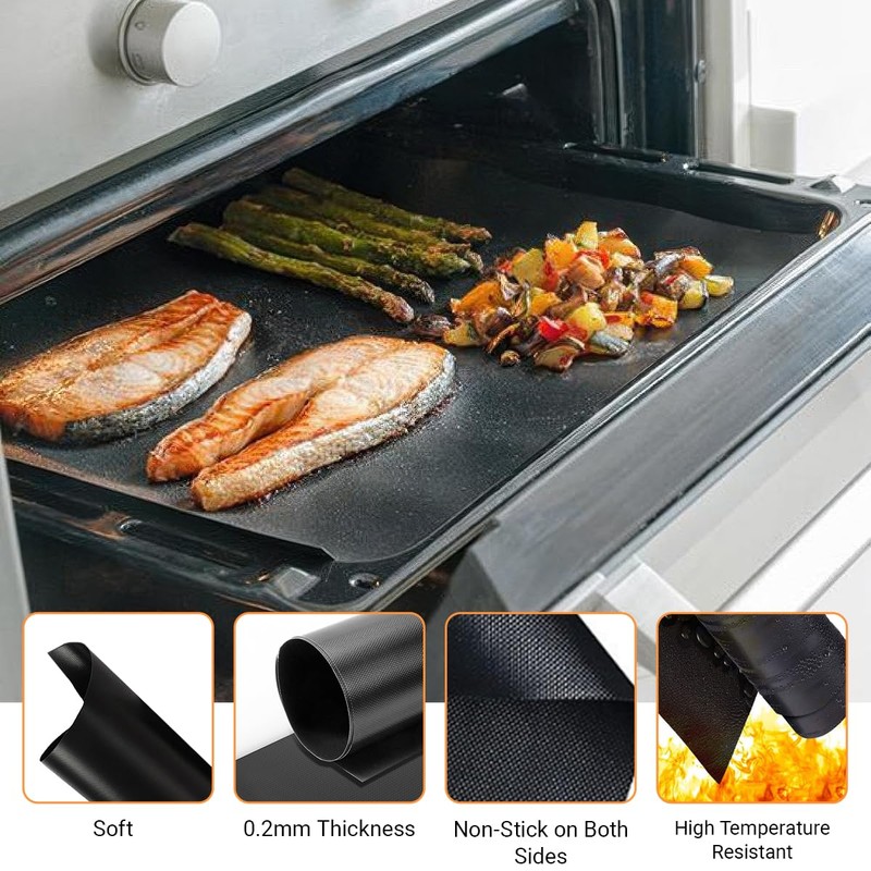 - Multifunctional use: permanent baking foil for baking tray for roasters, ovens, microwaves, bread bins, gas stoves, pans and all types of ovens, ideal for baking, grilling, cooking, protects the oven clean and tidy