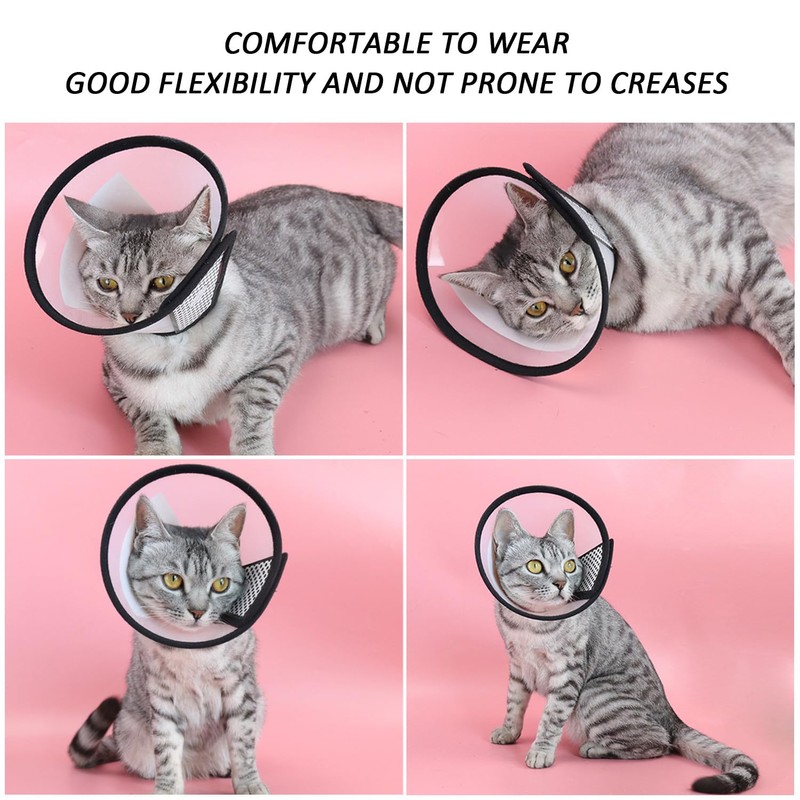 - 3. Product Design This collar has a larger adhesive surface to ensure a more secure fit. Adjustable diameter to provide your pet with a comfortable seat. The soft cotton edge does not constrict the pet's neck and the transparent material does not block the pet's view.