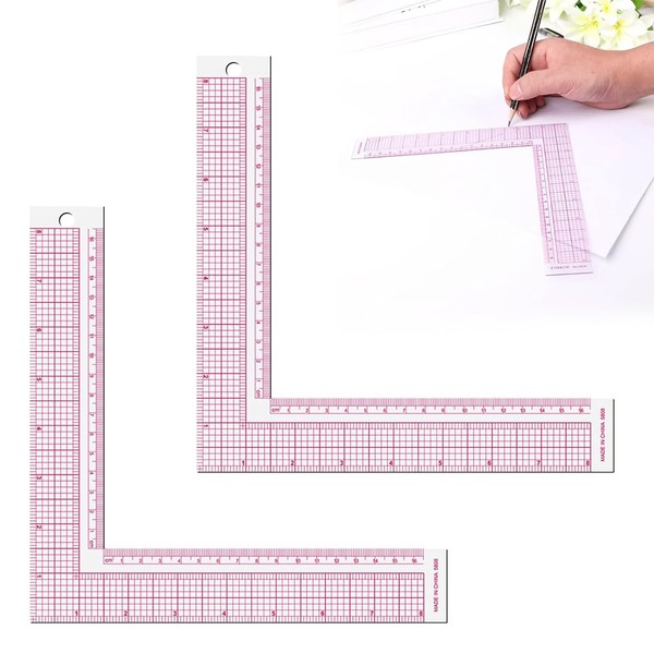 Pack of 2 Plastic Sewing Ruler, L Square Ruler, Frame Ruler, Sewing Size Ruler, Transparent Sewing Ruler, Square Ruler, for Sewing 90 Degrees, DIY Clothing