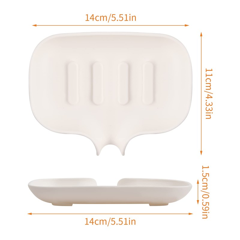 - 1. The white plastic soap dishes are sold in a pack of 2 and are made of durable PP material that is polished to a high gloss. The rounded edges allow for safe use without the risk of accidental cuts.