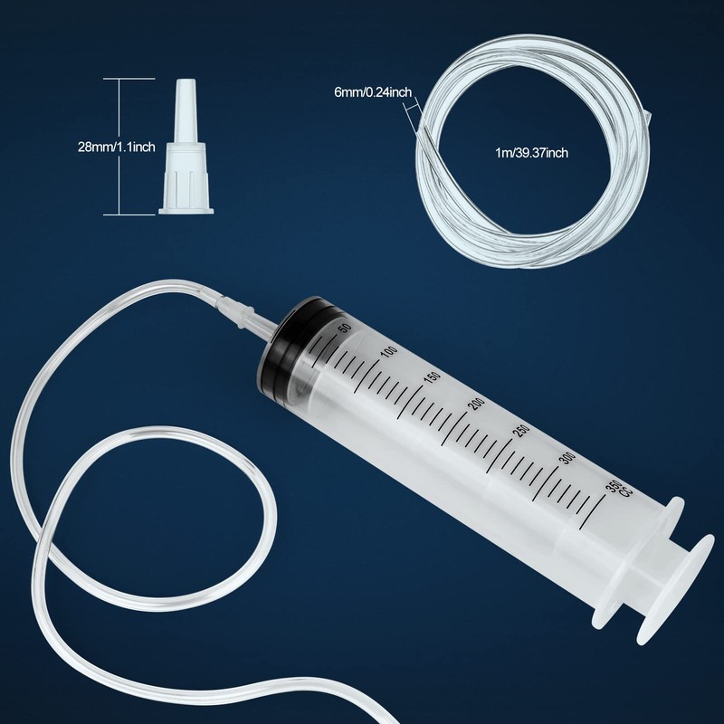 - Package includes: 1 x 150 ml syringe, 1 x 250 ml syringe, 2 x 1 m plastic hose, 2 x converter + end caps
