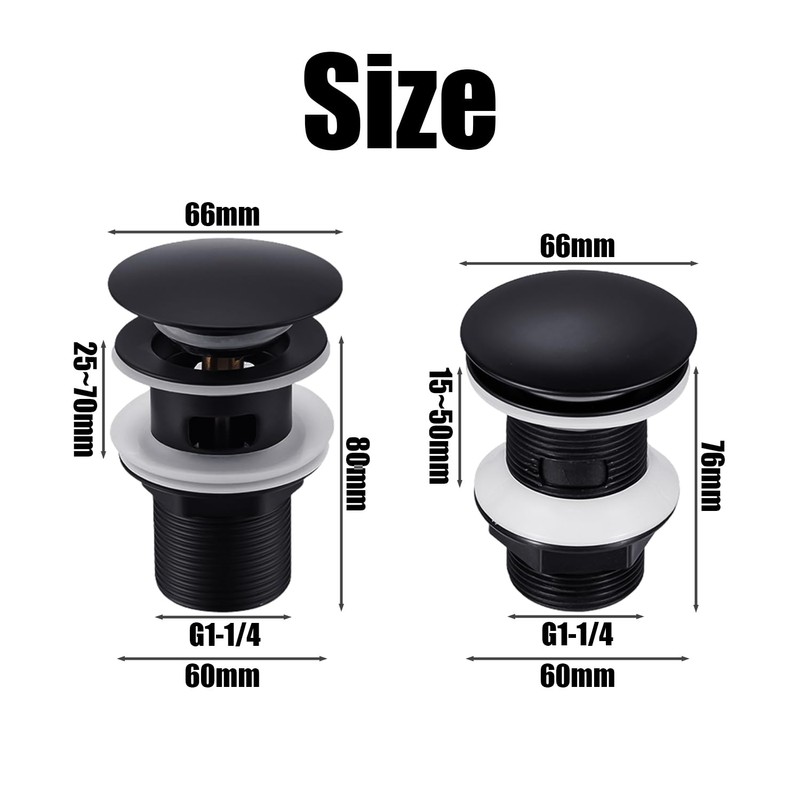 - Product contents: you will receive 2 pop-up drains, including 1 made of stainless steel and 1 made of plastic; the size is 6.6 cm and the colour is black, which can effectively improve drainage efficiency.