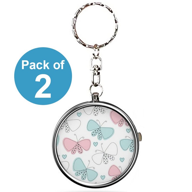 Pack of 2 - Portable Pill Organizer (Butterfly) Metal Medicine Box, 3 Compartment Stash Vitamin Meds Case with Keychain