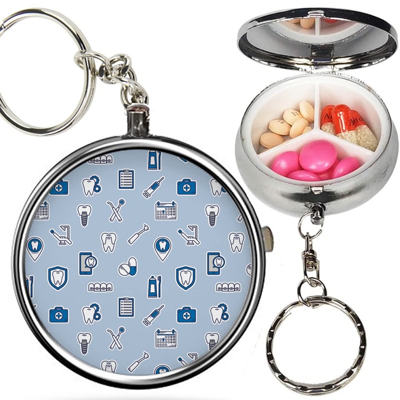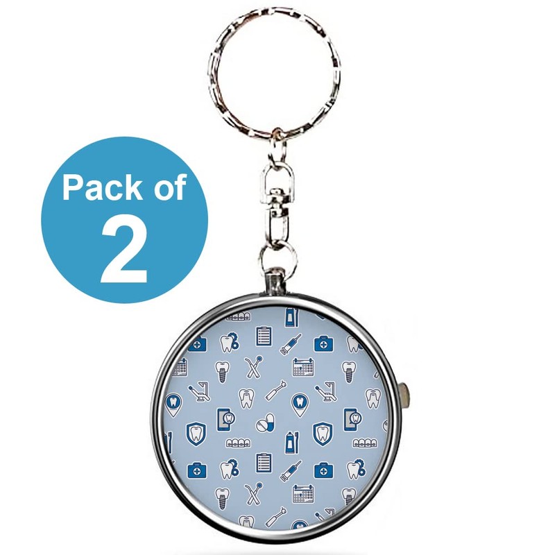 Pack of 2 - Portable Pill Organizer (Dental Linear) Metal Medicine Box, 3 Compartment Stash Vitamin Meds Case with Keychain