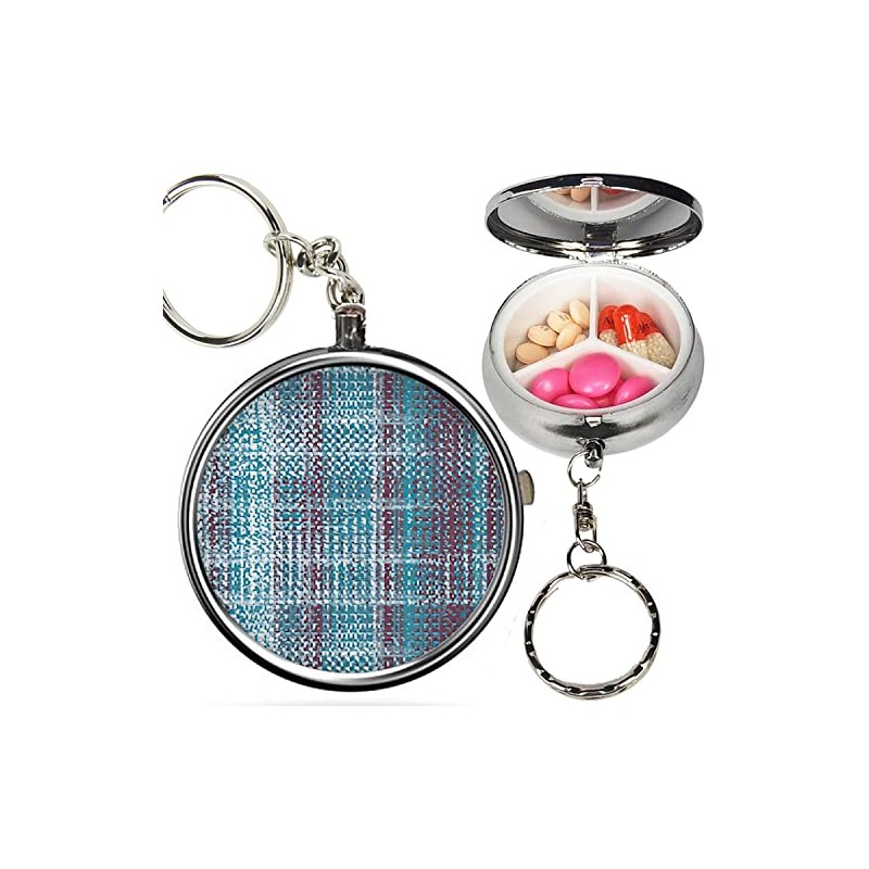 Pack of 2 - Portable Pill Organizer (Modern Tweed Linen) Metal Medicine Box, 3 Compartment Stash Vitamin Meds Case with Keychain