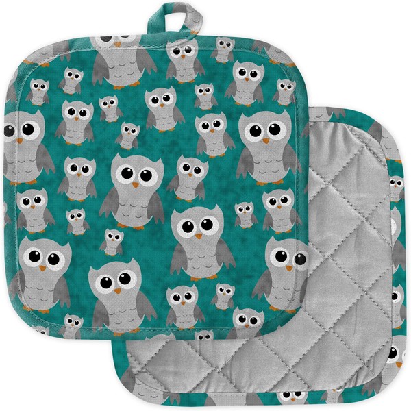 [Pack of 2] Pot Holders for Kitchen, Washable Heat Resistant Pot Holders, Hot Pads, Trivet for Cooking and Baking (Gray Owls On Teal Textured)