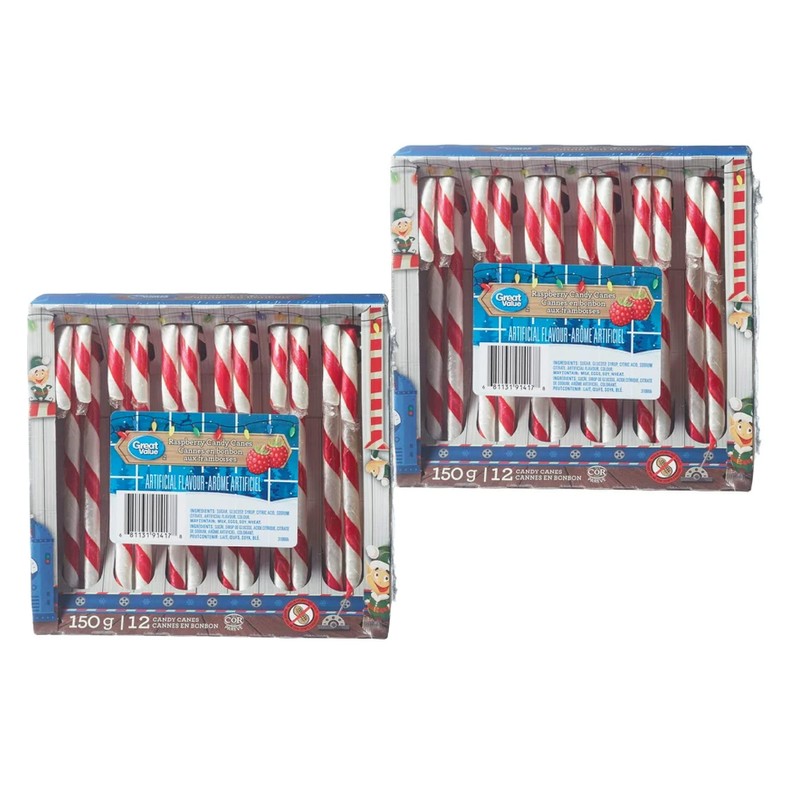 - Pack of 2 raspberry candy canes, 32 candy canes total (16 each pack)
