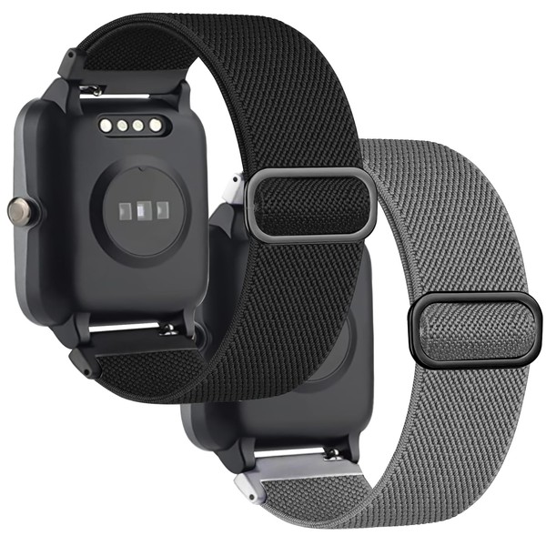 [Pack of 2] Replacement Strap Compatible with Veryfitpro ID205L Watch, 19 mm Stretchy Nylon Straps with Blackview ID205L/Yamay ID205L/Letsfit ID205L/Willful ID205L/Letscom ID205L/Fitpolo ID205L/Grv