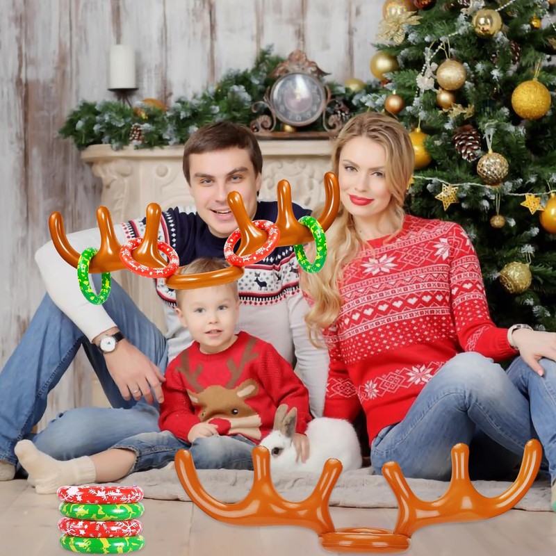 Pack of 2, Ring Toss Game Inflatable Reindeer Antlers Rings Throwing for Outdoor Indoor Children Christmas Party Decoration Family Game Party Christmas Party