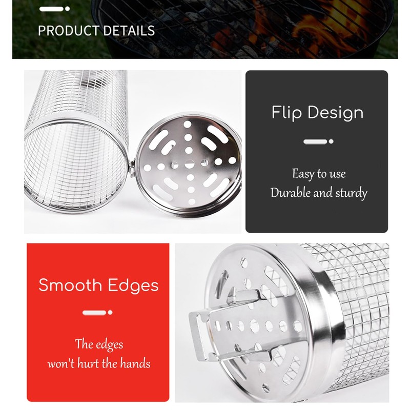 3. Multi-use: rolling grill basket for vegetables, meat, seafood. For picnics, camping, barbecues, parties.