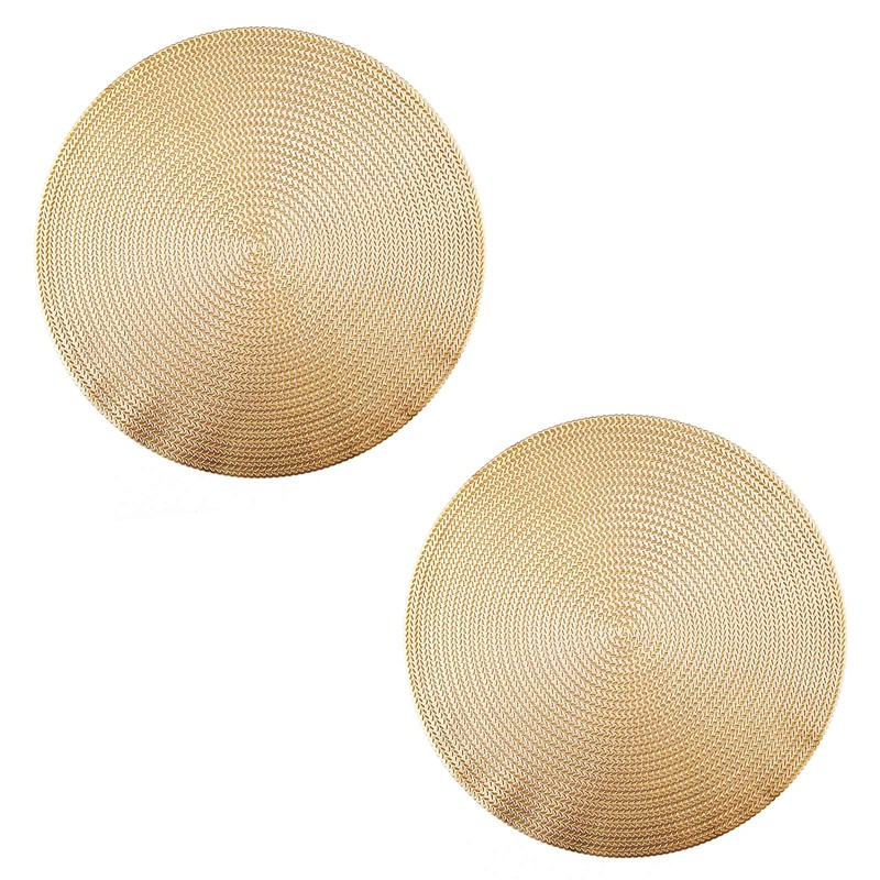 Pack of 2 Round Placemats, Golden Round Anti-scalding Placemat, Round Wheat Ears, Hollow PVC Placemat, for Plates, Pot Holders, Table Decoration (Golden)