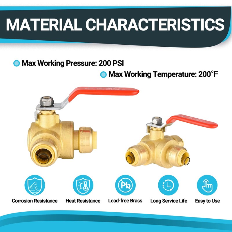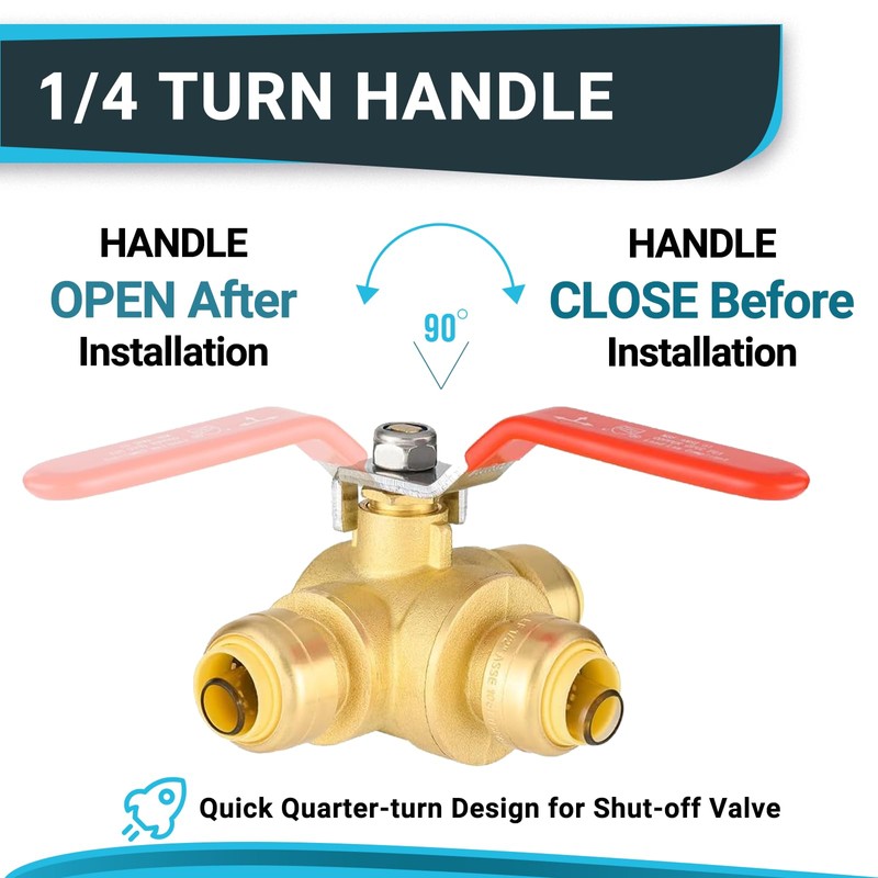 - Package Include: 2 pack red 1/2 Inch push-fit 3-Way ball valves with Disconnect Clip Tools for hot and cold water