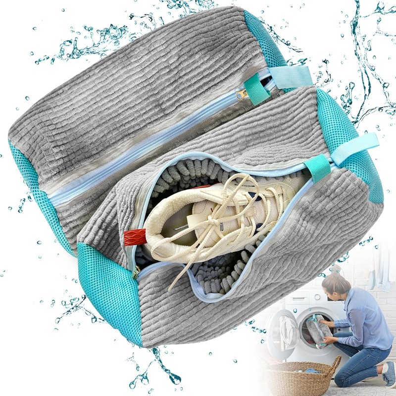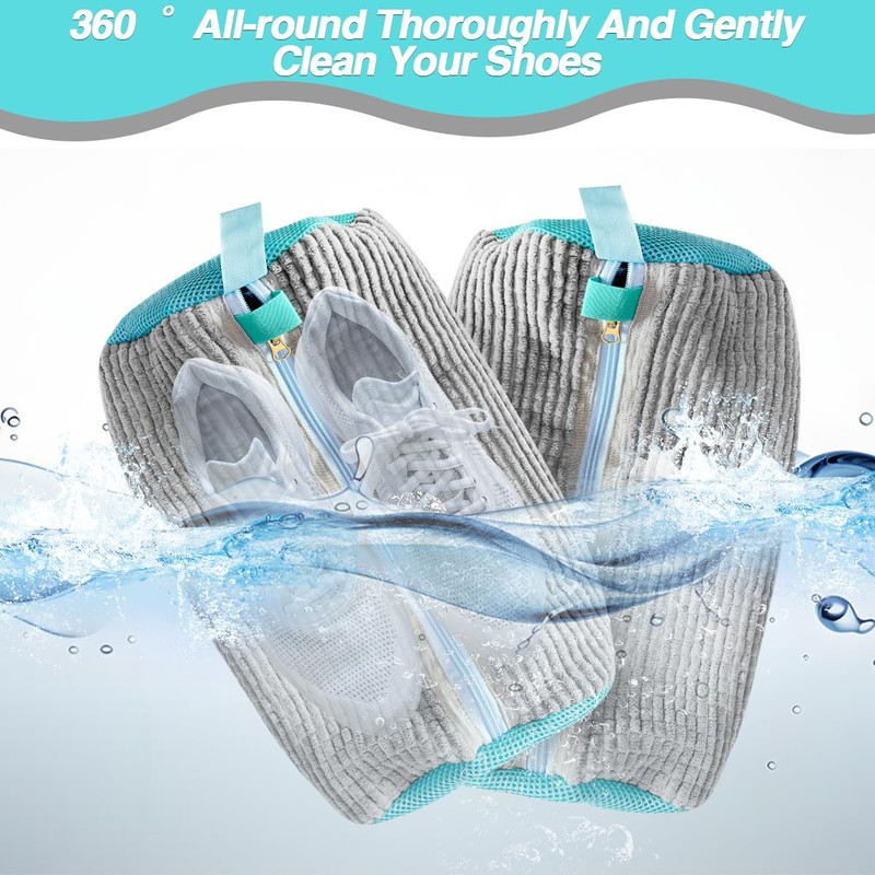 - THE PERFECT SOLUTION FOR SHOE WASHING AND CARE: Laundry bag for shoes perfect for those who don't like washing hands. A self-cleaning shoe washing net makes shoe washing easier, say goodbye to manual scrubbing! Simply place the shoes in the laundry bag and then in the washing machine, and your shoes will remain in their original condition.