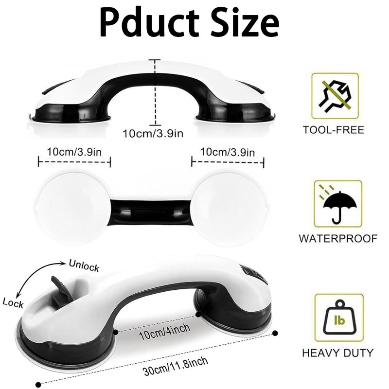 The suction handle is a kind of disability and mobility aid, providing support and stability when getting in or out of the bath or shower. Perfect for the bathtub, shower, next to the toilet, near the stairs or next to a chair.