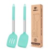 Pack of 2 Silicone Solid Turner, Non Stick Slotted Kitchen Spatulas, High Heat Resistant BPA Free Cooking Utensils, Ideal Cookware for Fish, Eggs, Pancakes(Green)